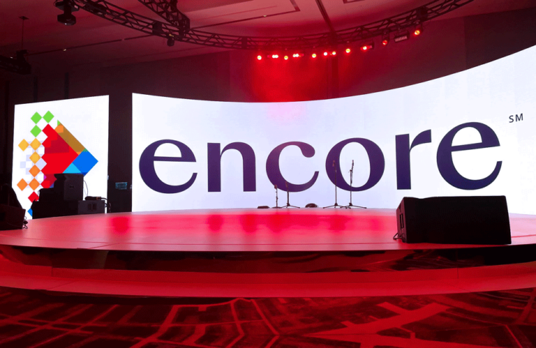 ¿Cómo se ve esto en la práctica? La resolución y la claridad proporcionadas por las paredes LED los hacen adecuados para reuniones médicas o cualquier otra reunión donde sea esencial ver imágenes de alto contraste. En las sesiones generales, se pueden usar en lugar de proyecciones tradicionales como elementos escénicos, o pueden comprender todo el conjunto. “Las paredes LED no tienen que ser rectangulares o cuadradas”, comparte Futch. “Puede construirlos y escalonarlos en cualquier configuración que necesite”.