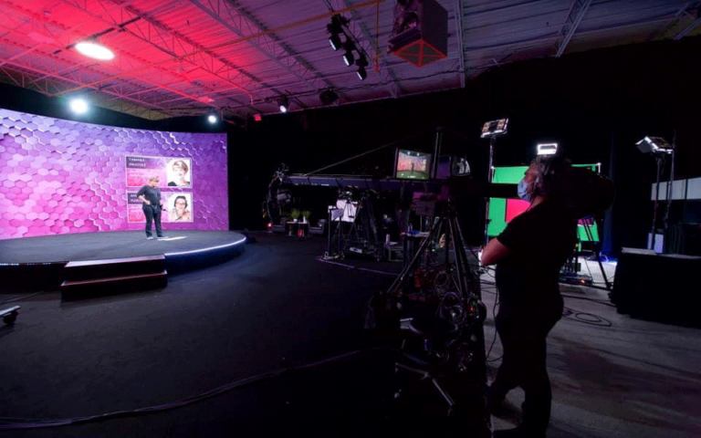 “Extended Reality es una cámara que trabaja con un servidor de medios y LED Wall para crear un movimiento de fondo realista para dar a los espectadores la sensación de estar en otra ubicación”, explica Futch. Es una técnica utilizada para producciones de TV/películas para crear conjuntos inmersivos de 360 grados. Pero la misma tecnología se puede usar para eventos.