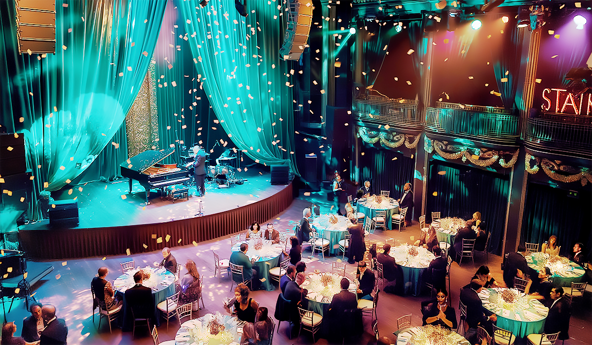 Por qué funciona: Backdrop Pro crea un rentable para los presupuestos de eventos ajustados, proporcionando una opción escénica más asequible que una pared LED o un conjunto duro personalizado.