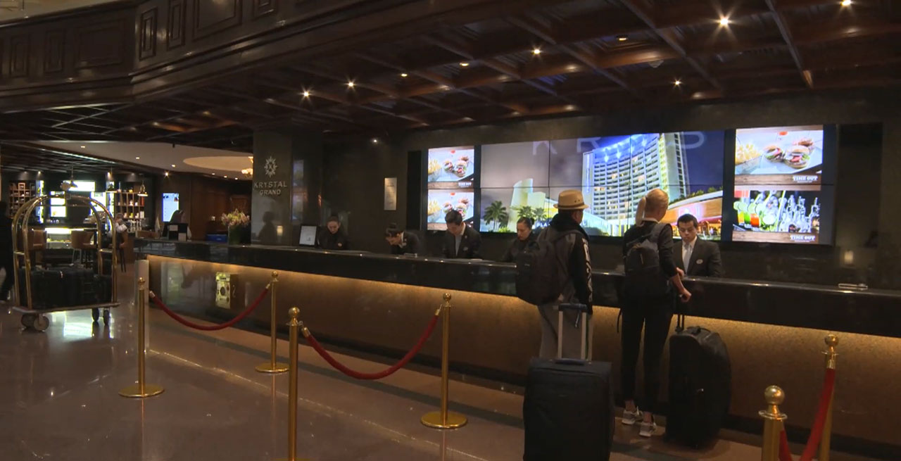 The Video Wall currently displays the services, amenities and facilities of the hotel chain, it even provides information about venues, news, food and beverages.